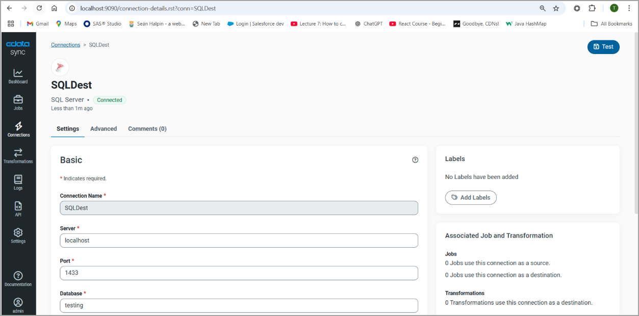 Click Create & Test. If the connection is successful, the connection appears on the Connections page.