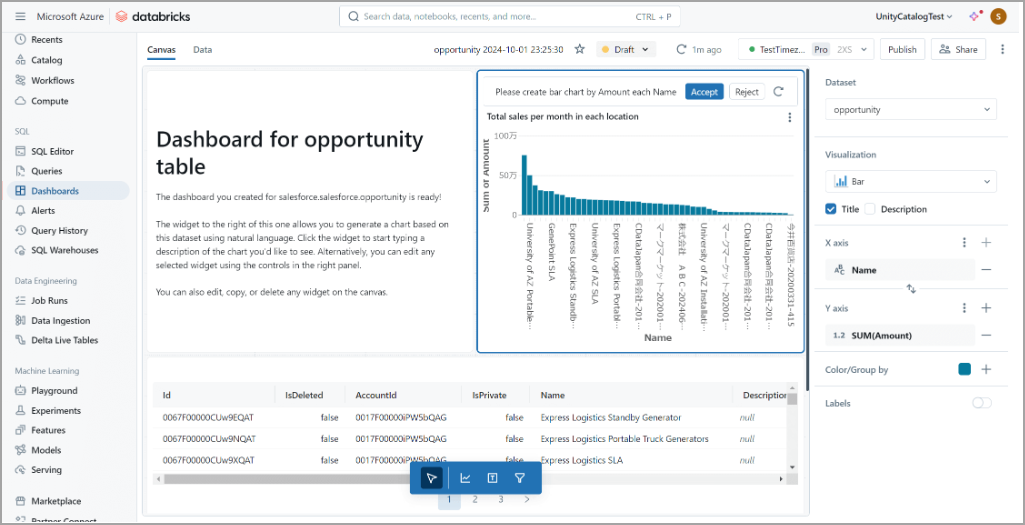 ナビゲーションペインのダッシュボードに移動して、データを視覚化します。